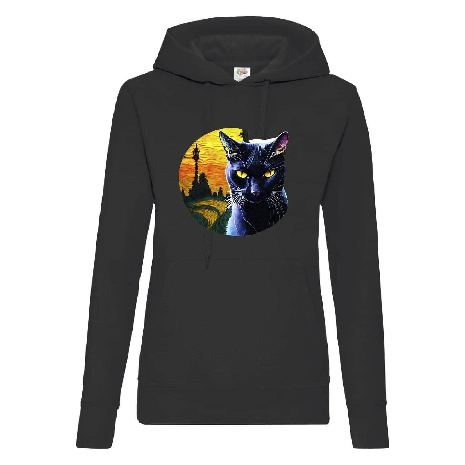 Жіноче худі з принтом у вигляді стилізованого зображення чорної кішки. Тканина 80% бавовна, 20% поліестер, приємна до тіла. Зручний жіночний фасон.