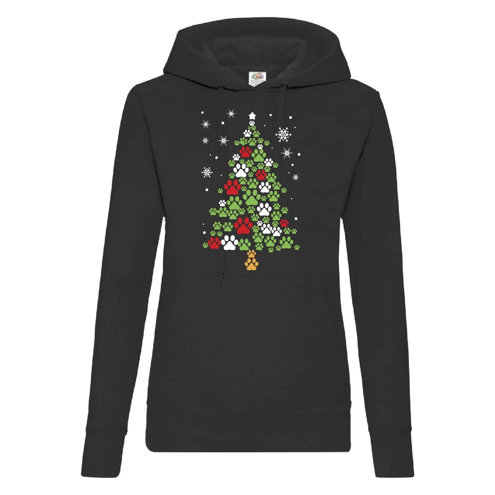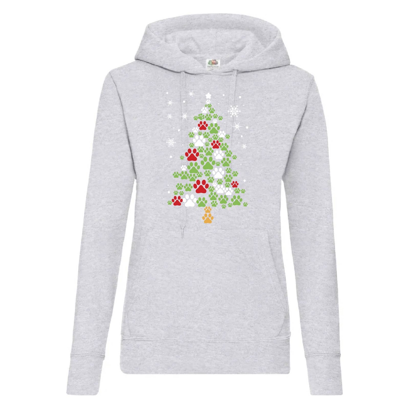 Жіноче худі з принтом у вигляді ялинки зі слідів. Тканина 80% бавовна, 20% поліестер, приємна до тіла. Зручний жіночний фасон.