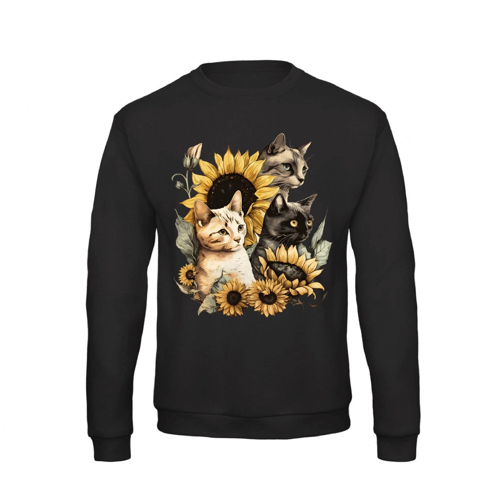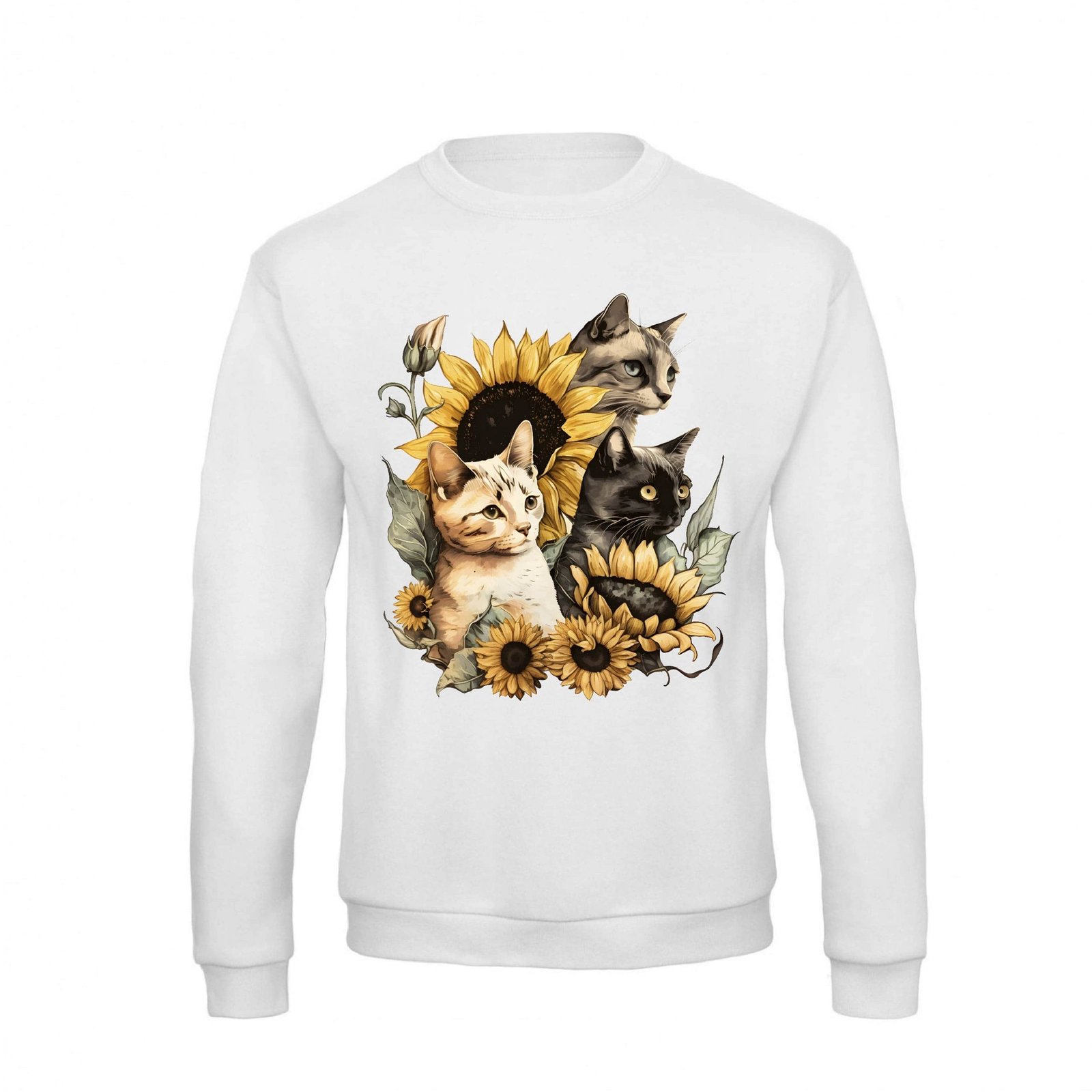 Чоловічий світшот з принтом милих котиків у соняхах. Тканина 50% бавовна, 50% поліестер, приємна до тіла. Зручний фасон.