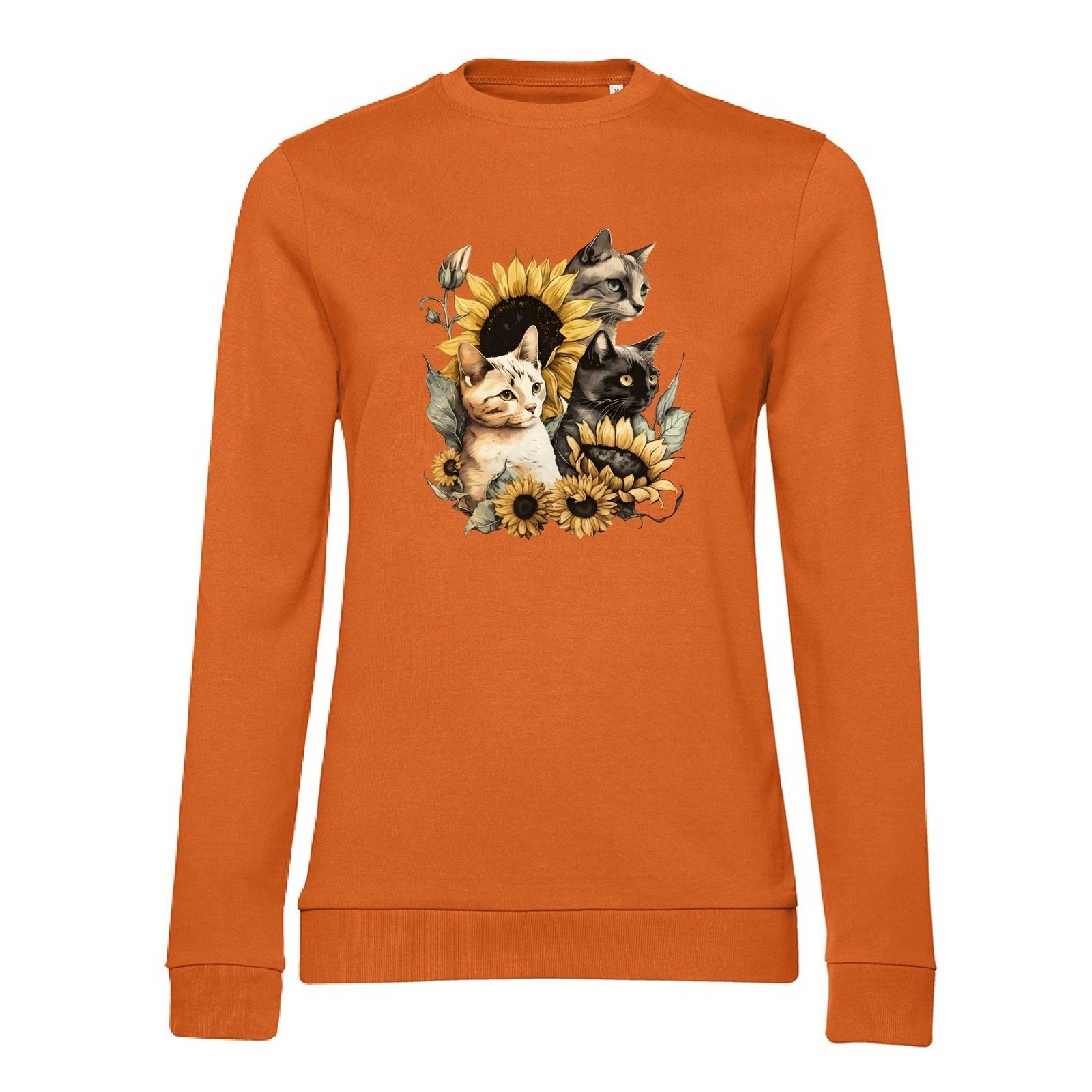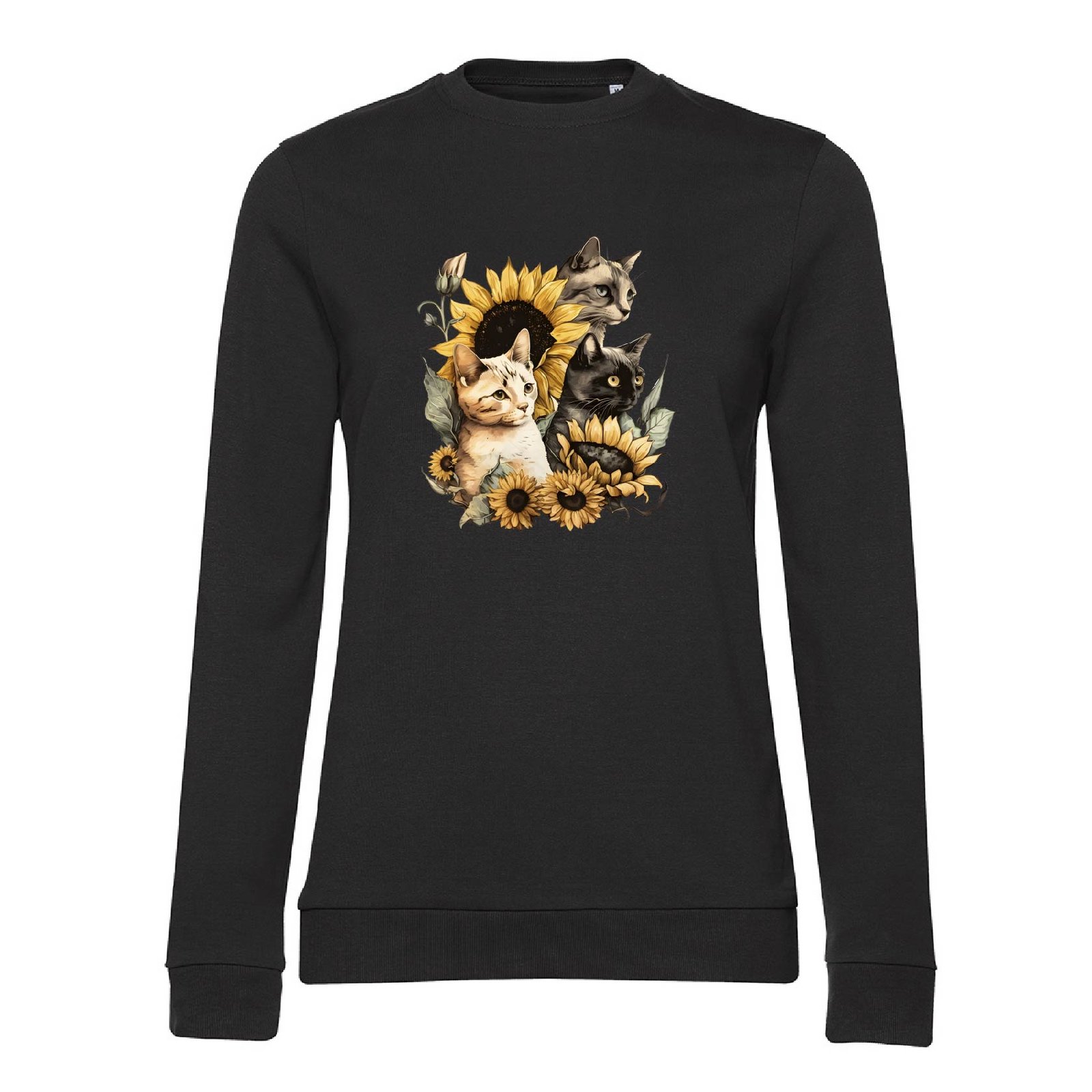 Жіночий світшот з принтом милих котиків у соняхах. Тканина 80% бавовна, 20% поліестер, приємна до тіла. Зручний жіночний фасон.