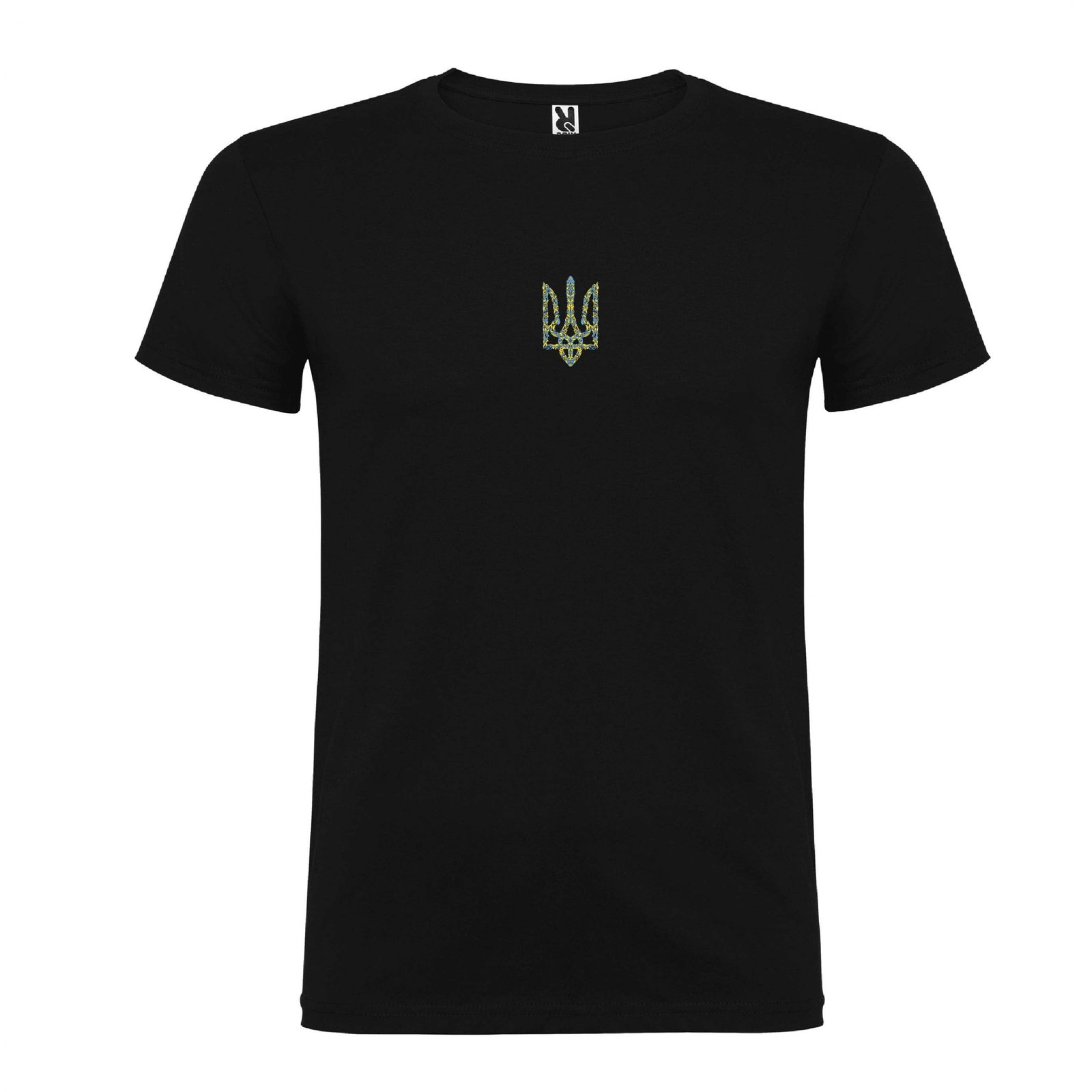 Футболка з боковими швами, з мінімалістичним тризубом жовто-синього кольору.